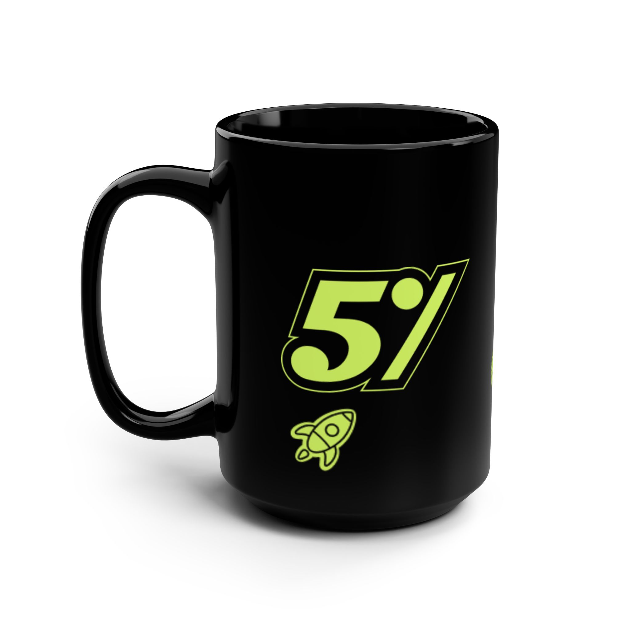 This glossy black 15oz mug brings a bold, playful energy to your morning routine. Neon-green